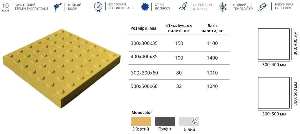 Тактильная плитка «ВНИМАНИЕ», Brukland (Брукланд) размеры 300х300 мм, 400х400 мм, 500х500 мм