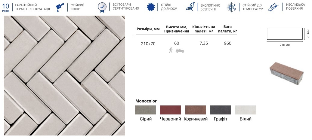 Высота 60 мм: Обладает высокой прочностью и подходит как для пешеходных дорожек, так и для площадок с движением легкового транспорта.